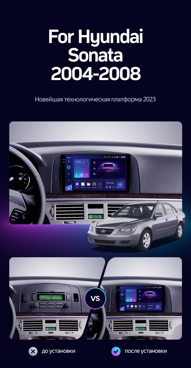 Штатний головний пристрій Teyes CC3 2k для Hyundai Sonata NF (2004 - 2008) рік випуску - це відмінна альтернатива оригінальної магнітолі.
