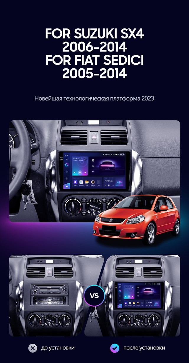 Штатний головний пристрій Teyes CC3 2k для Suzuki SX4 1 2006 - 2014 For Fiat Sedici (2005 - 2014) рік випуску - це відмінна альтернатива оригінальної магнітолі.